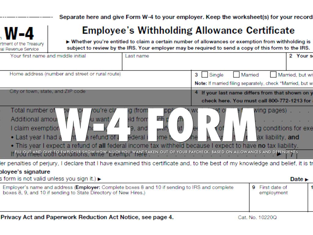 FILL OUT AND GIVE TO EMPLOYER SHOW HOW MUCH YOU WANT TAKEN OUT OF YOUR PAYCHECK. BASED ON ALLOWANCES AND DEPENDENTS
