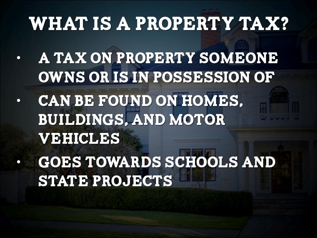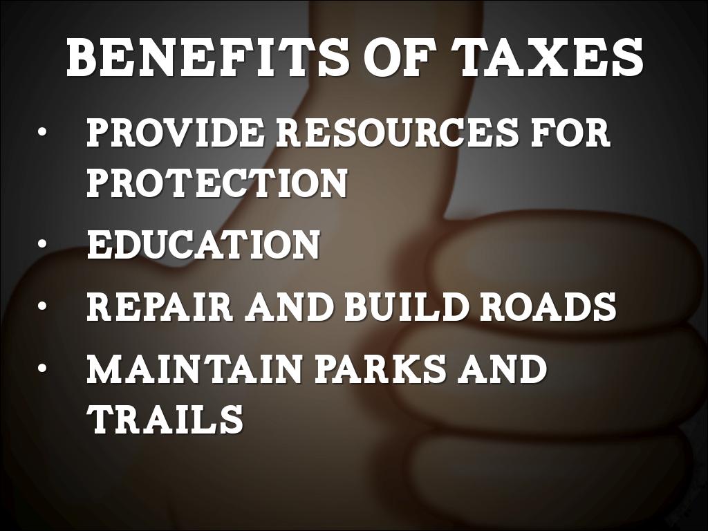 - Taxes are a sum of money you have to pay to the government to support government facilities or services.
