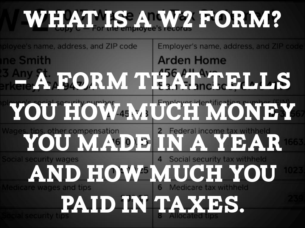 - A form that tells you how much money you made in a year and how much you paid in taxes.