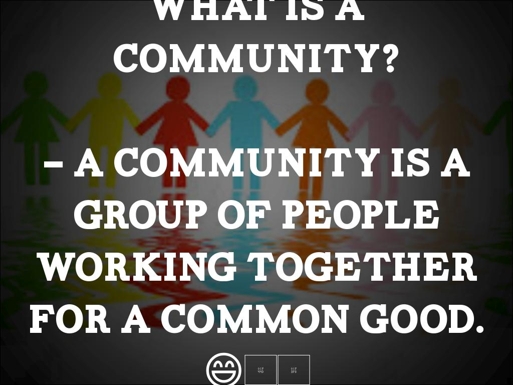 - A community is a group of people working together for a common good. ๐๐๐ป