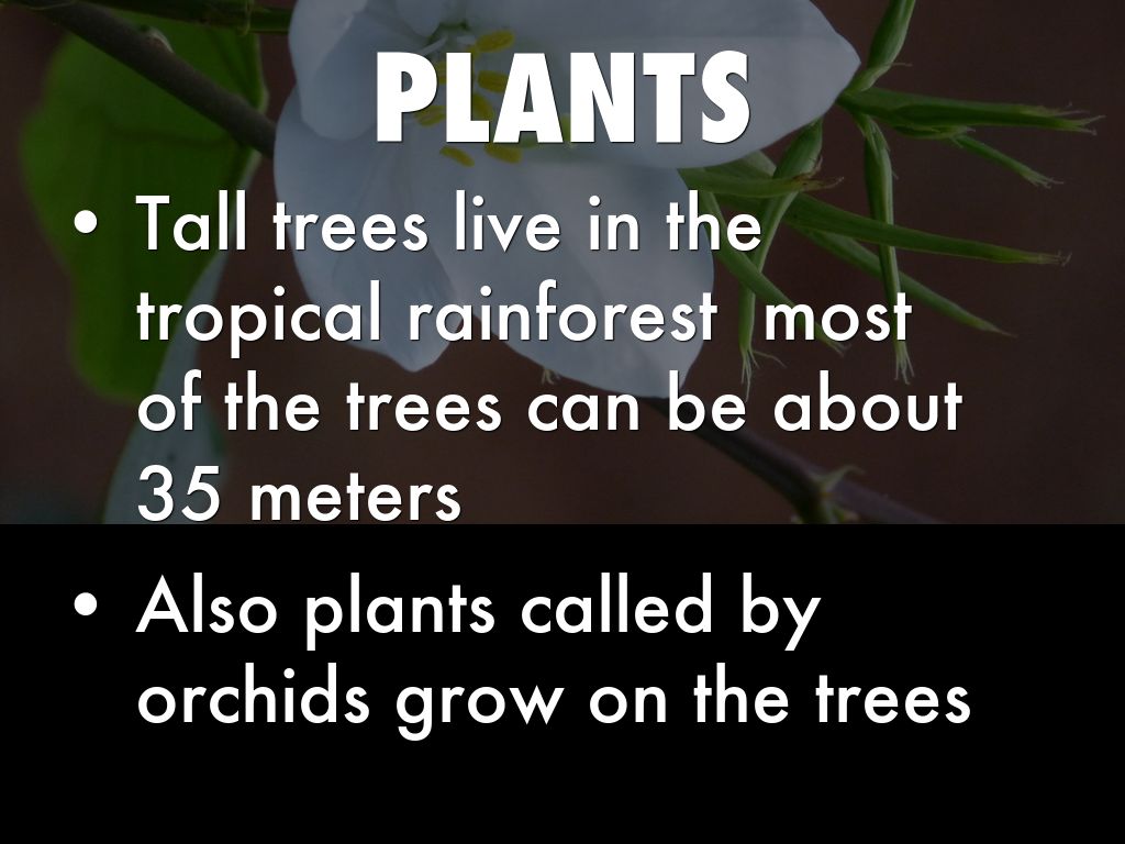 Tall trees live in the tropical rainforest most of the trees can be about 35 meters