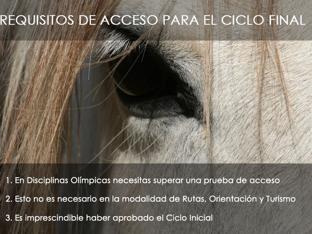 Se puede hacer el ciclo inicial sin hacer la prueba de acceso en los siguientes casos: a) tener el galope 7 de doma, o de salto o el galope 5 de cross. b) ser deportista de alto nivel