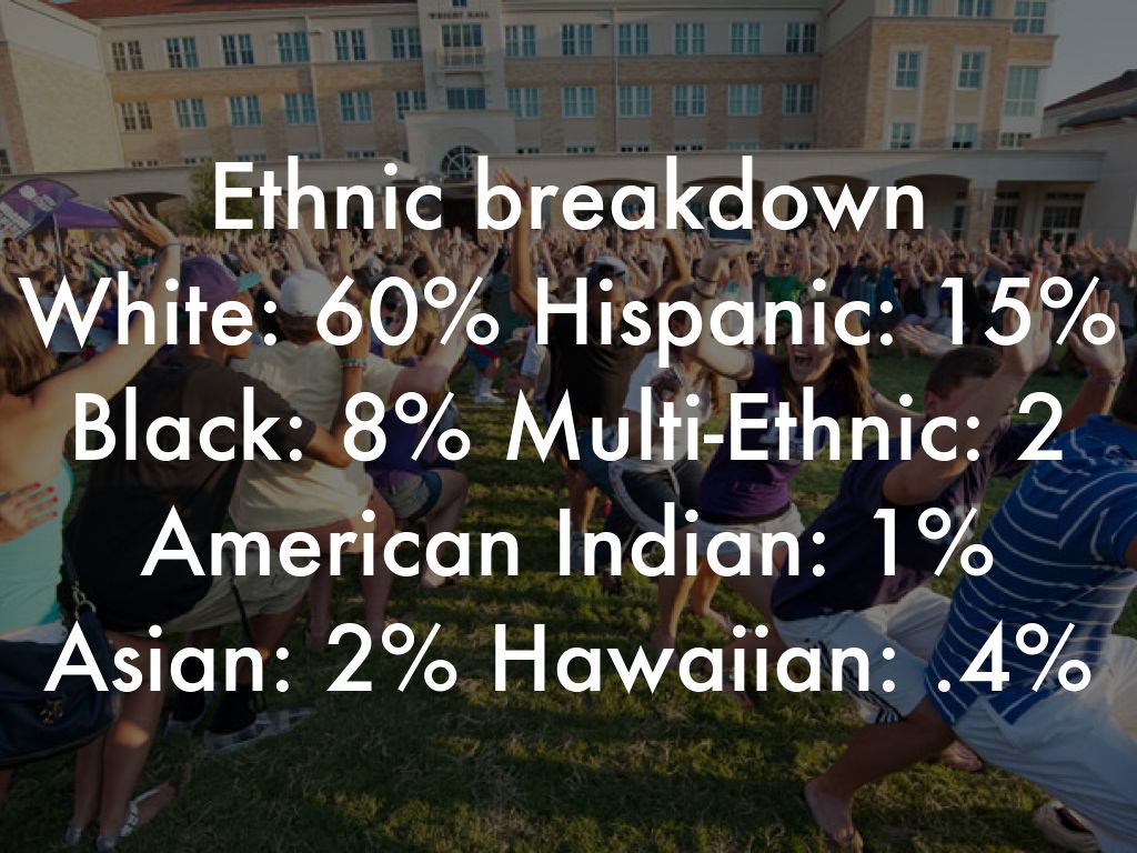 White: 60% Hispanic: 15% Black: 8% Multi-Ethnic: 2