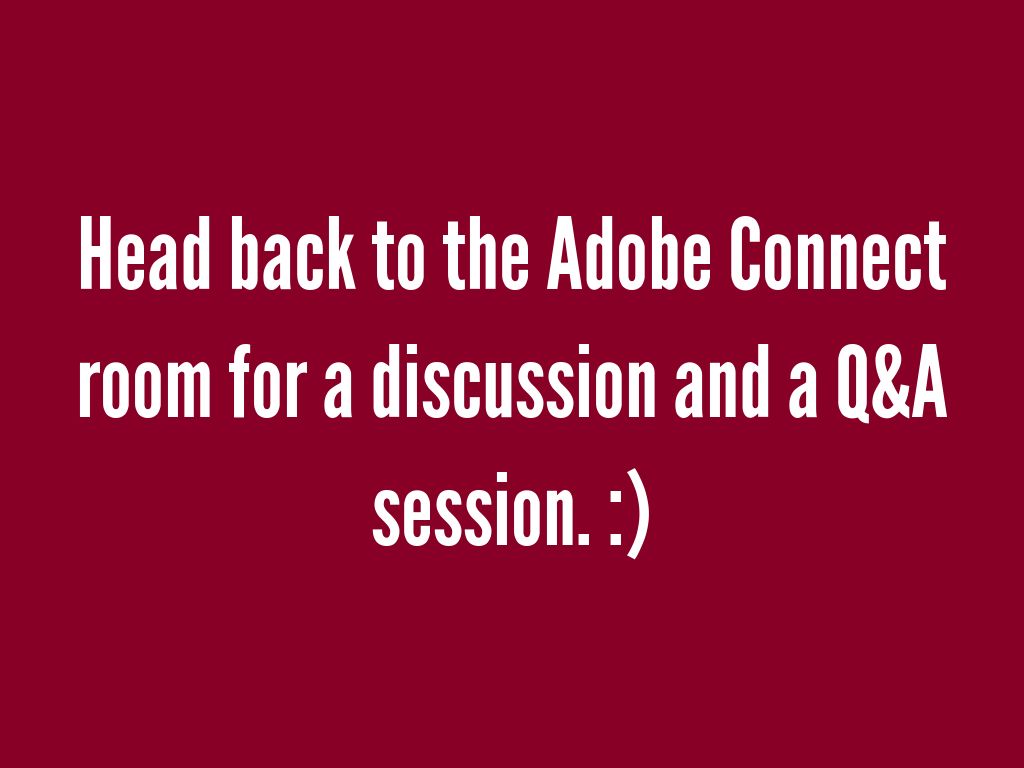 Head back to the Adobe Connect room for a discussion and a Q&A session. :)