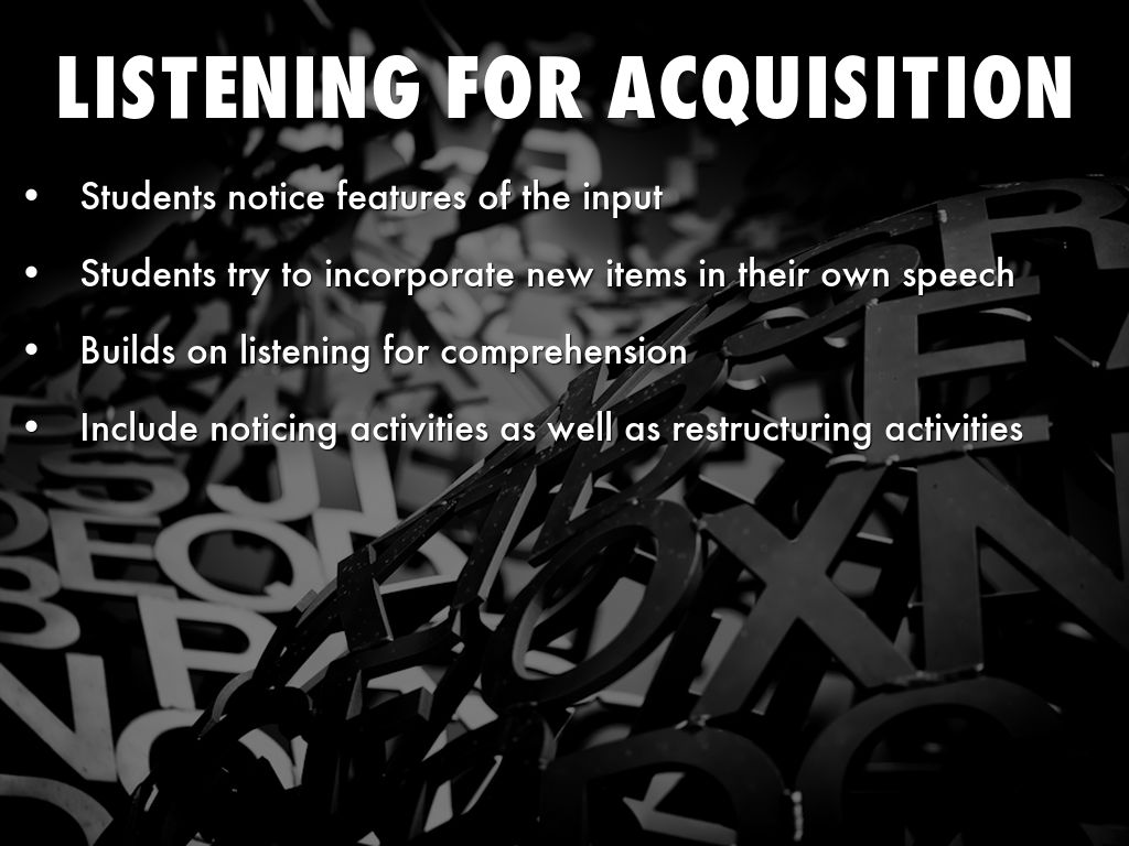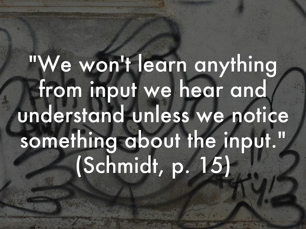 "We won't learn anything from input we hear and understand unless we notice something about the input." (Schmidt, p. 15)