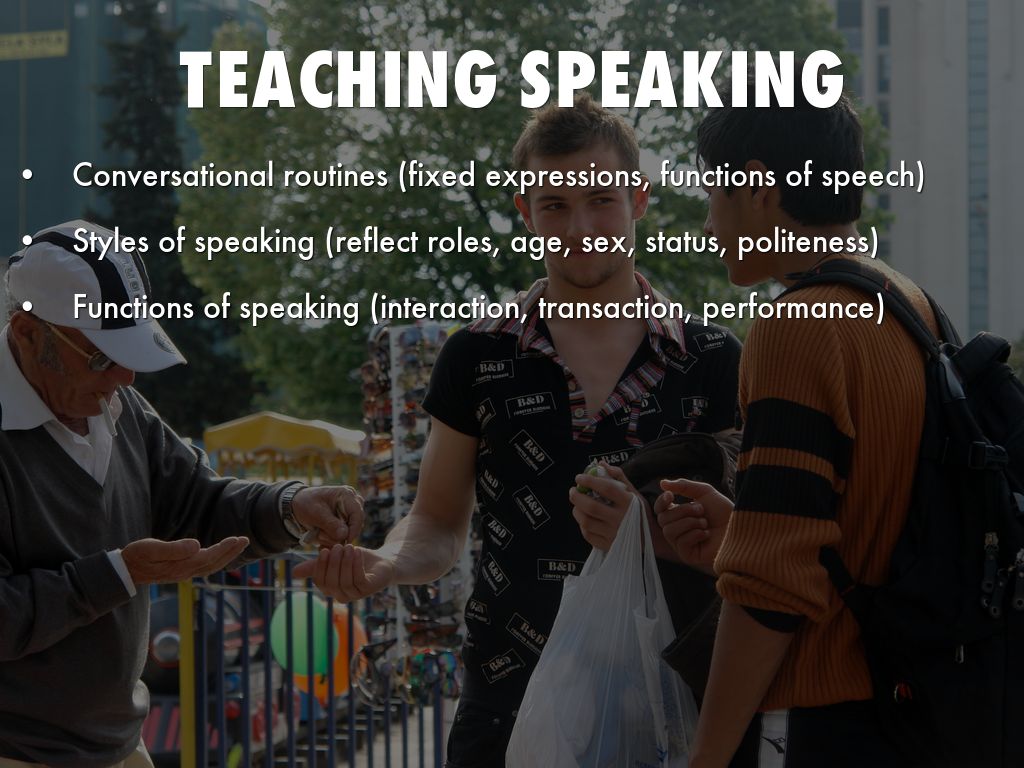 Styles of speaking (reflect roles, age, sex, status, politeness)