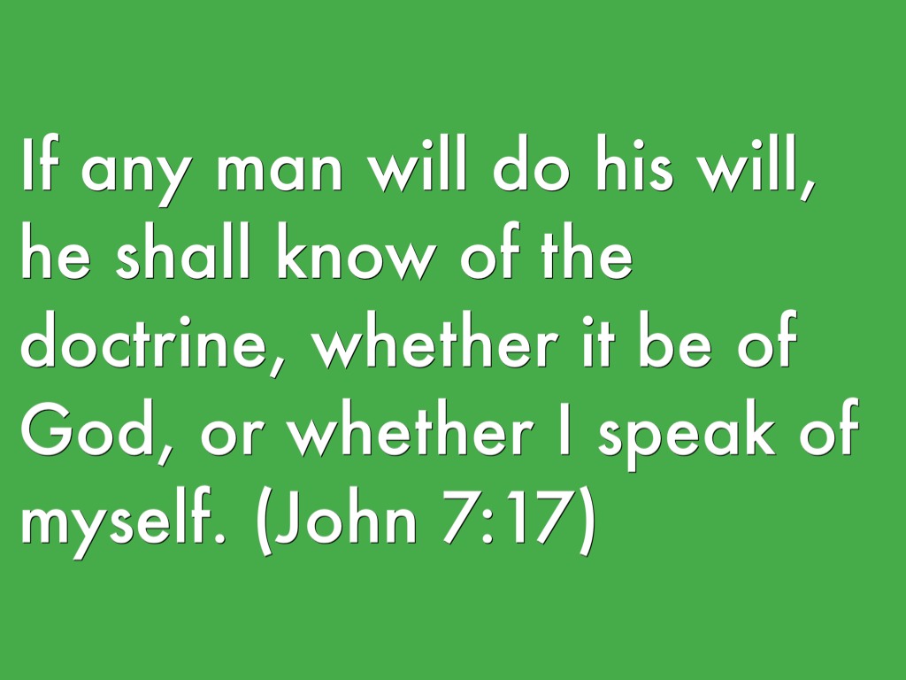 If any man will do his will, he shall know of the doctrine, whether it be of God, or whether I speak of myself. (John 7:17)