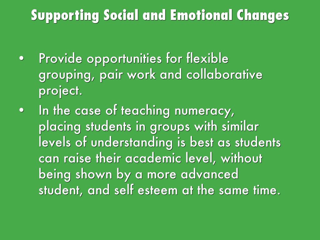 - In the case of teaching numeracy, placing students in groups with similar levels of understanding is best as students can raise their academic level, without being shown by a more advanced student, and self esteem at the same time.