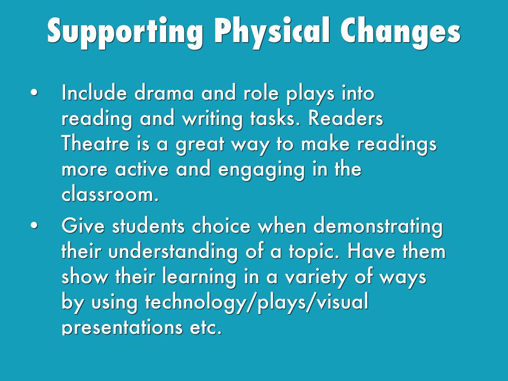 - Include drama and role plays into reading and writing tasks. Readers Theatre is a great way to make readings more active and engaging in the classroom.