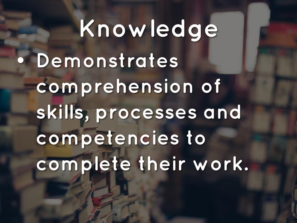 Demonstrates comprehension of skills, processes and competencies to complete their work.