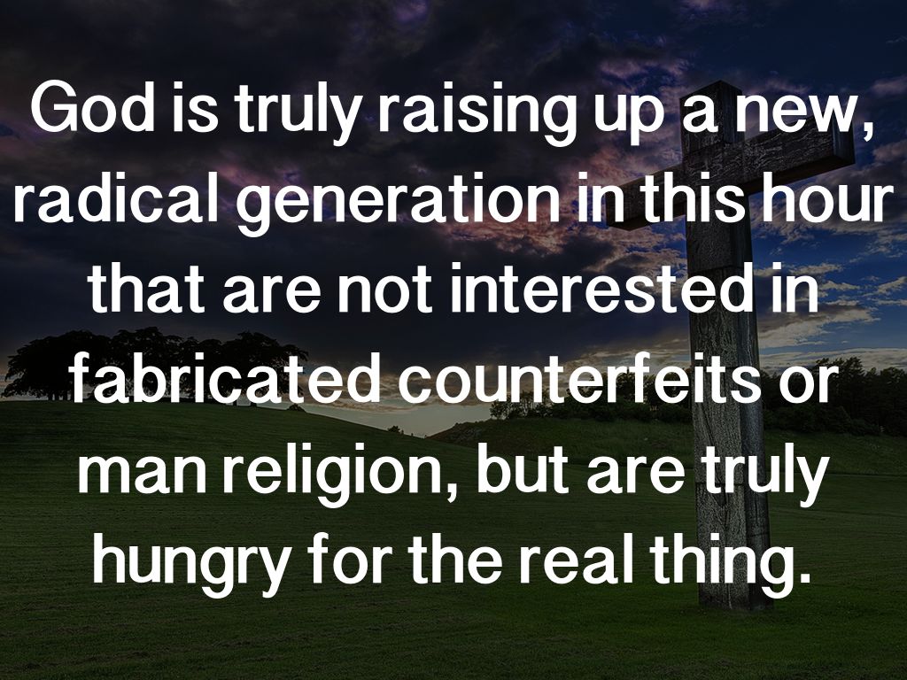 God is truly raising up a new, radical generation in this hour that are not interested in fabricated counterfeits or man religion, but are truly hungry for the real thing.