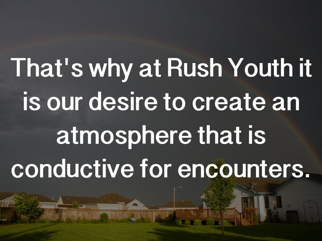 That's why at Rush Youth it is our desire to create an atmosphere that is conductive for encounters.