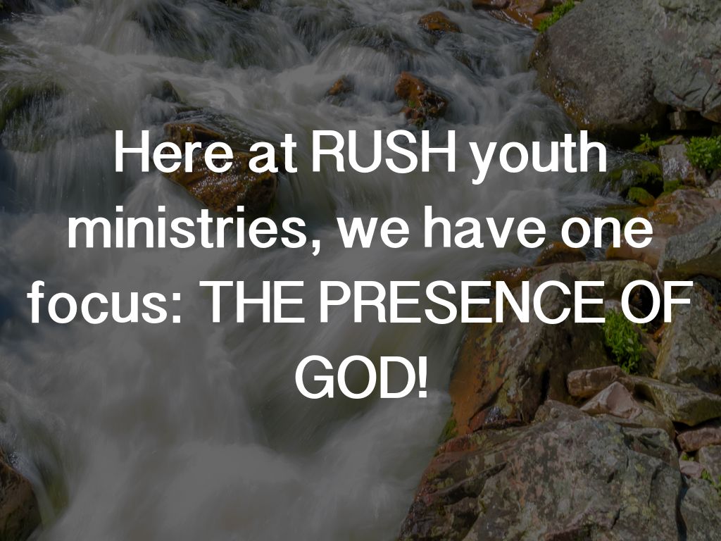 Here at RUSH youth ministries, we have one focus: THE PRESENCE OF GOD!