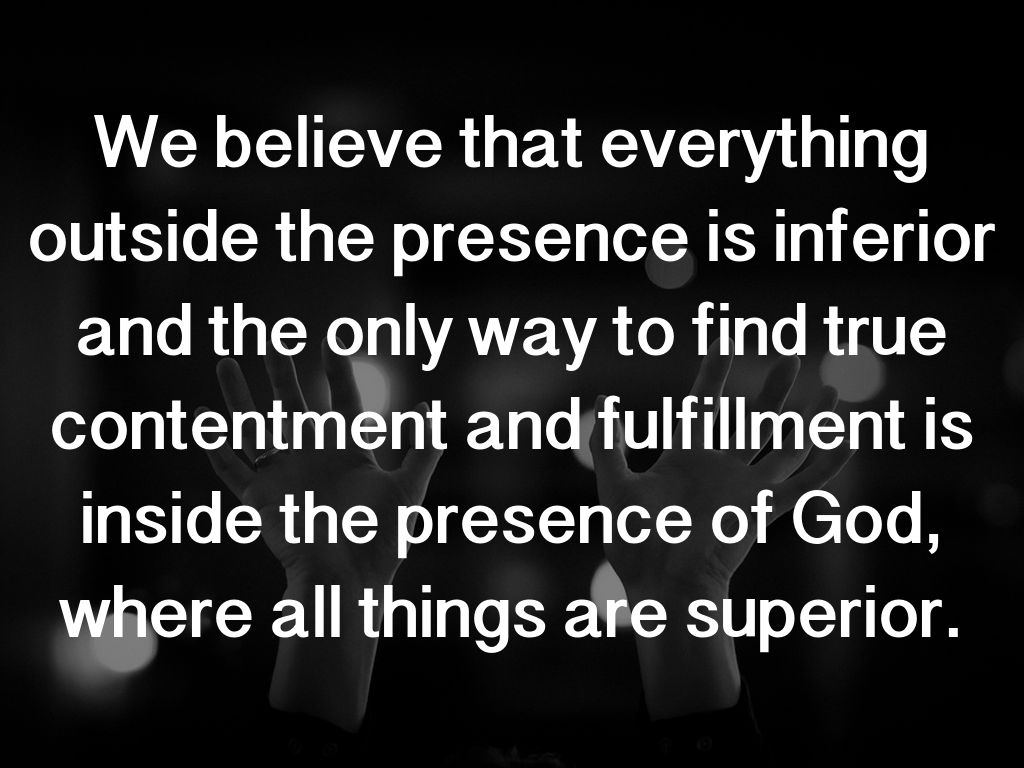 We believe that everything outside the presence is inferior and the only way to find true contentment and fulfillment is inside the presence of God, where all things are superior.