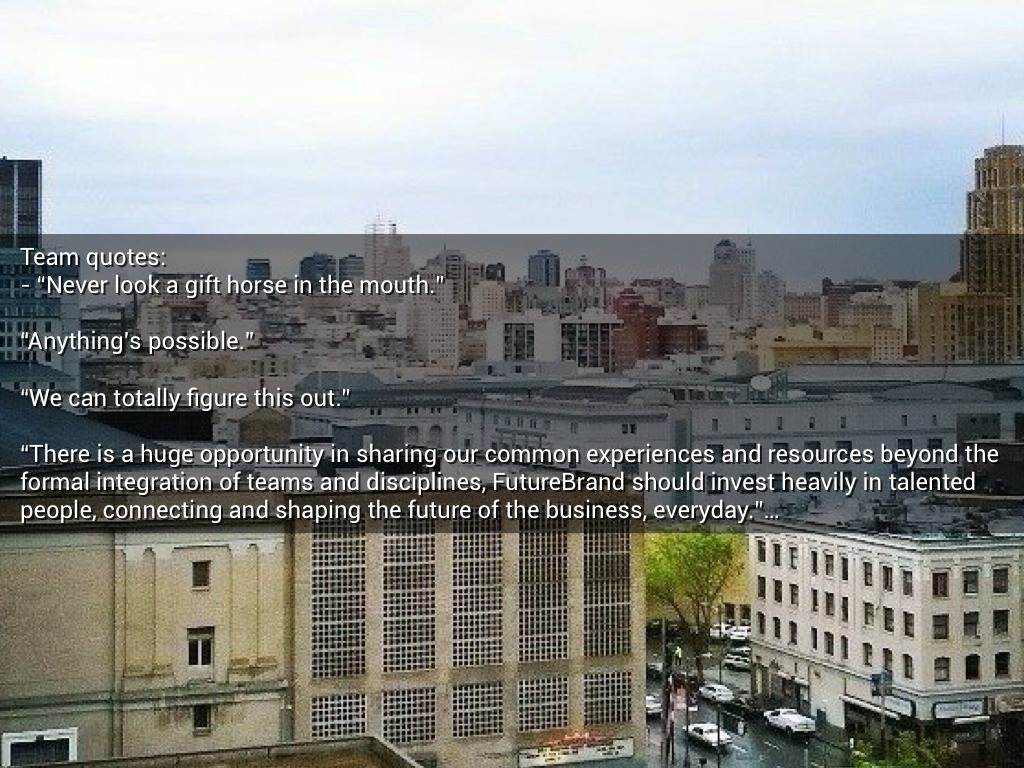 “There is a huge opportunity in sharing our common experiences and resources beyond the formal integration of teams and disciplines, FutureBrand should invest heavily in talented people, connecting and shaping the future of the business, everyday.”