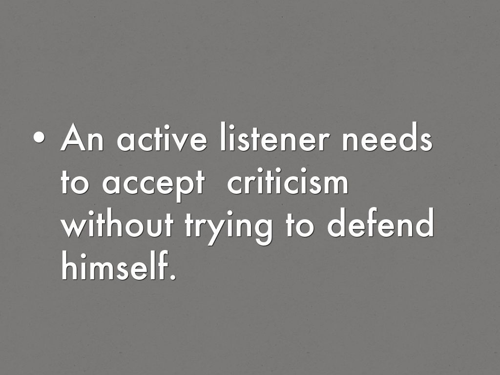 An active listener needs to accept criticism without trying to defend himself.