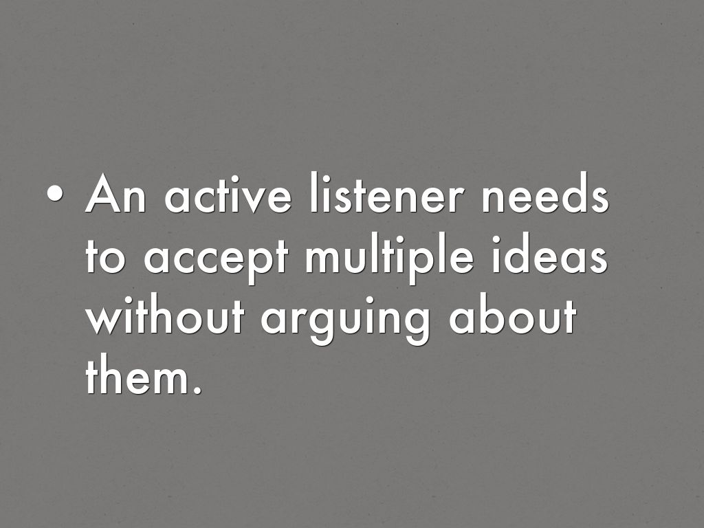 An active listener needs to accept multiple ideas without arguing about them.