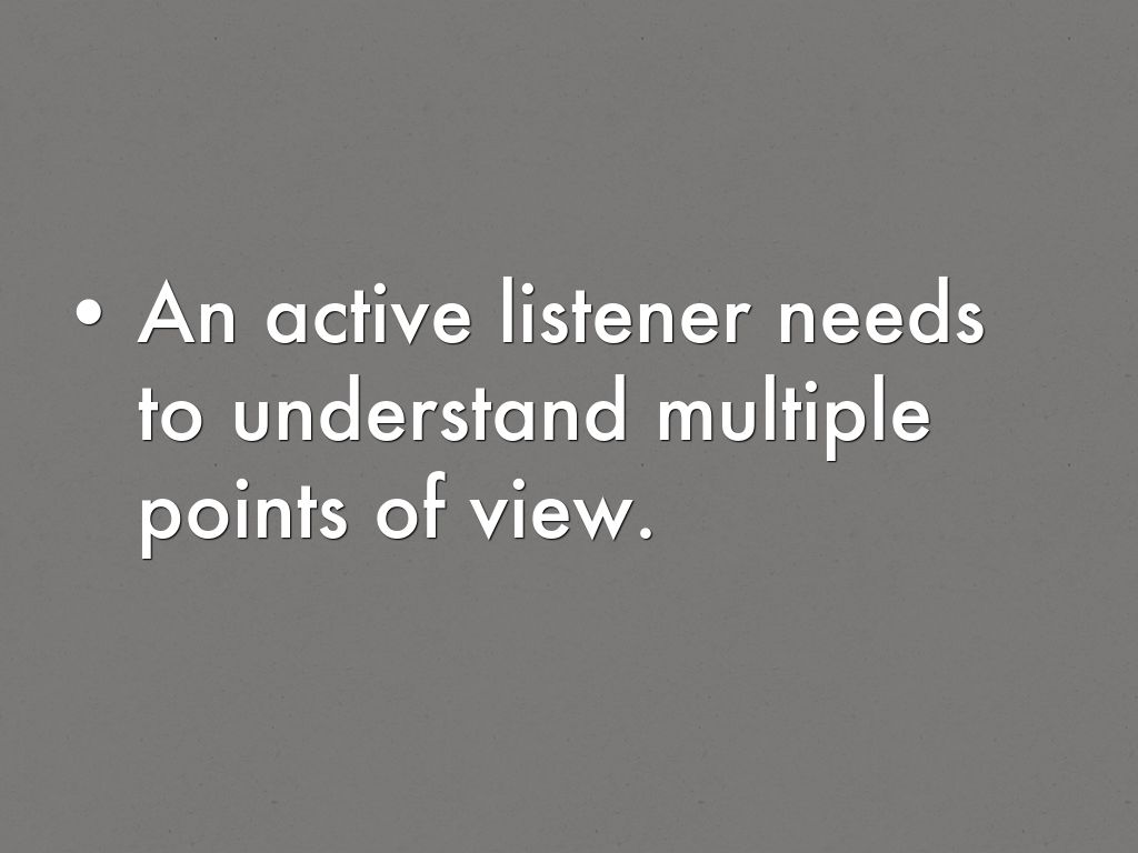 An active listener needs to understand multiple points of view.
