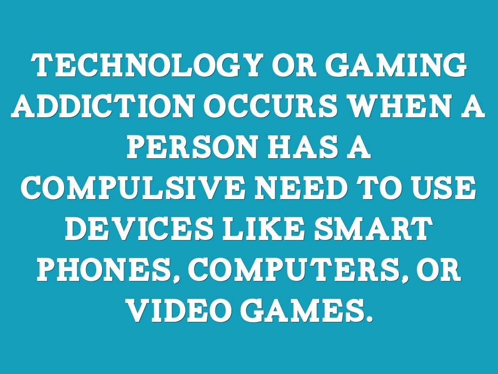 Technology or gaming addiction occurs when a person has a compulsive need to use devices like smart phones, computers, or video games.
