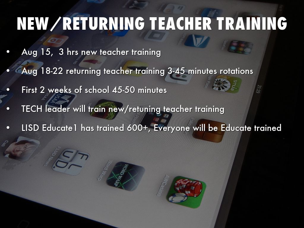 Aug 18-22 returning teacher training 3-45 minutes rotations