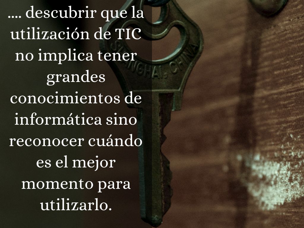 .... descubrir que la utilización de TIC no implica tener grandes conocimientos de informática sino reconocer cuándo es el mejor momento para utilizarlo.