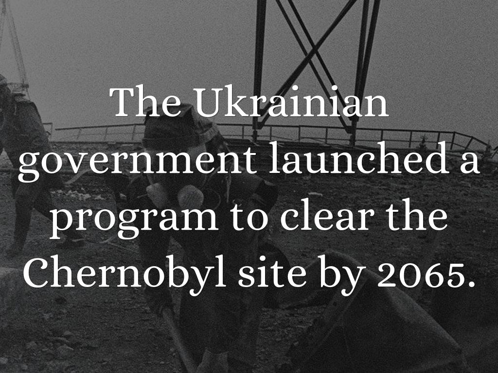 The Ukrainian government launched a program to clear the Chernobyl site by 2065.