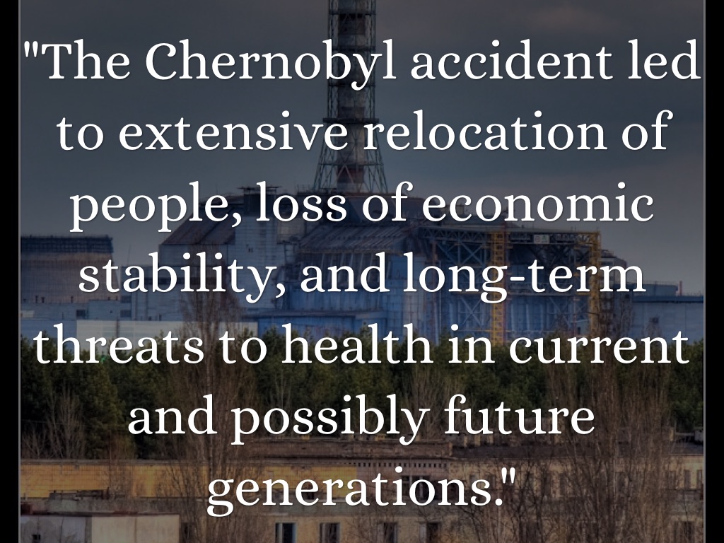 "The Chernobyl accident led to extensive relocation of people, loss of economic stability, and long-term threats to health in current and possibly future generations."