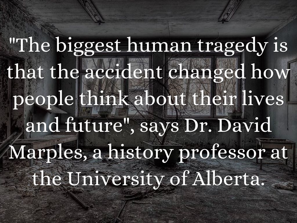 "The biggest human tragedy is that the accident changed how people think about their lives and future", says Dr. David Marples, a history professor at the University of Alberta.