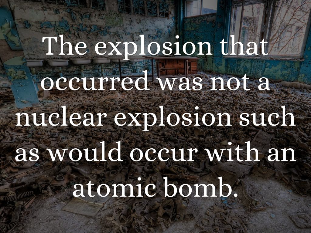 The explosion that occurred was not a nuclear explosion such as would occur with an atomic bomb.