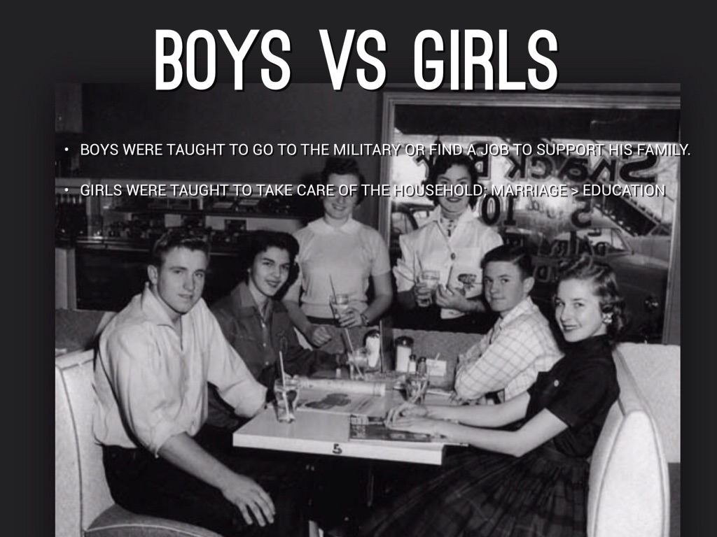BOYS WERE TAUGHT TO GO TO THE MILITARY OR FIND A JOB TO SUPPORT HIS FAMILY.