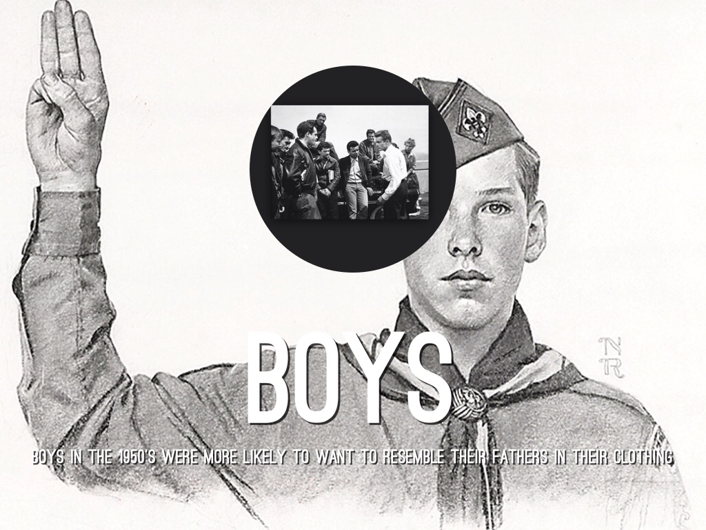 BOYS IN THE 1950'S WERE MORE LIKELY TO WANT TO RESEMBLE THEIR FATHERS IN THEIR CLOTHING