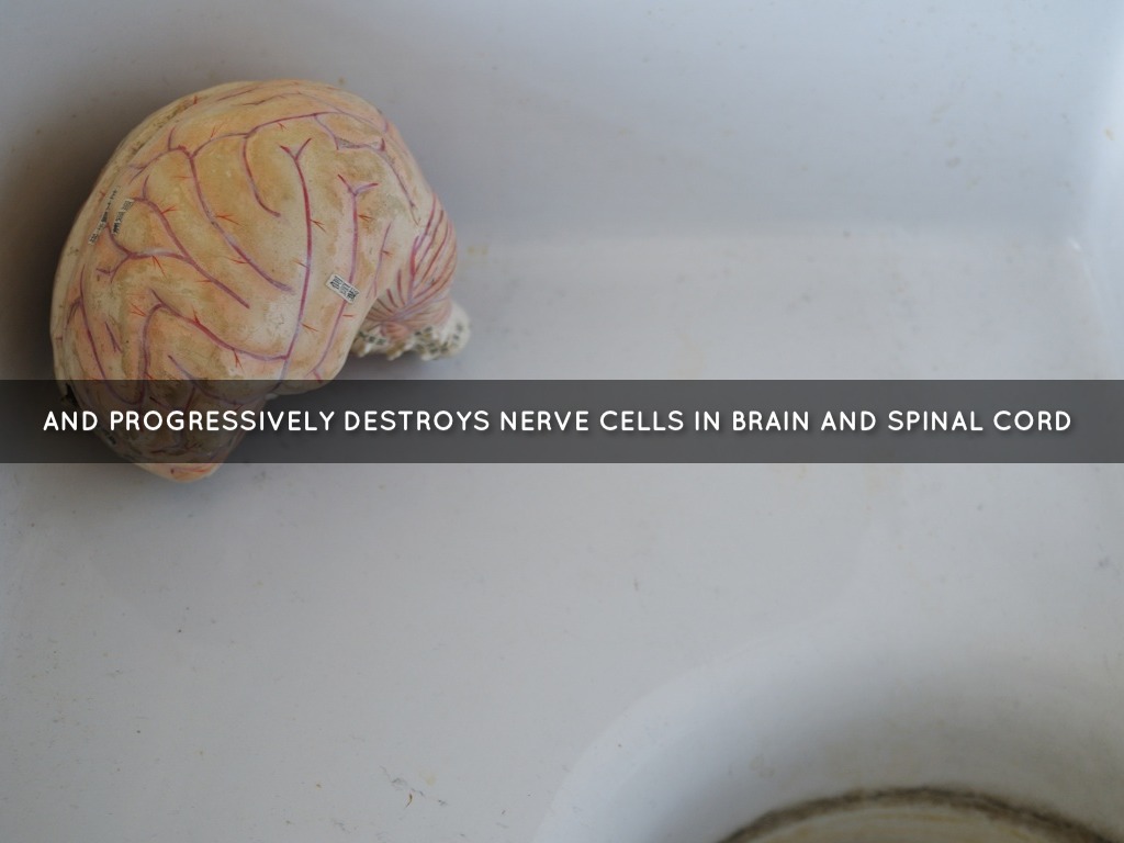 AND PROGRESSIVELY DESTROYS NERVE CELLS IN BRAIN AND SPINAL CORD