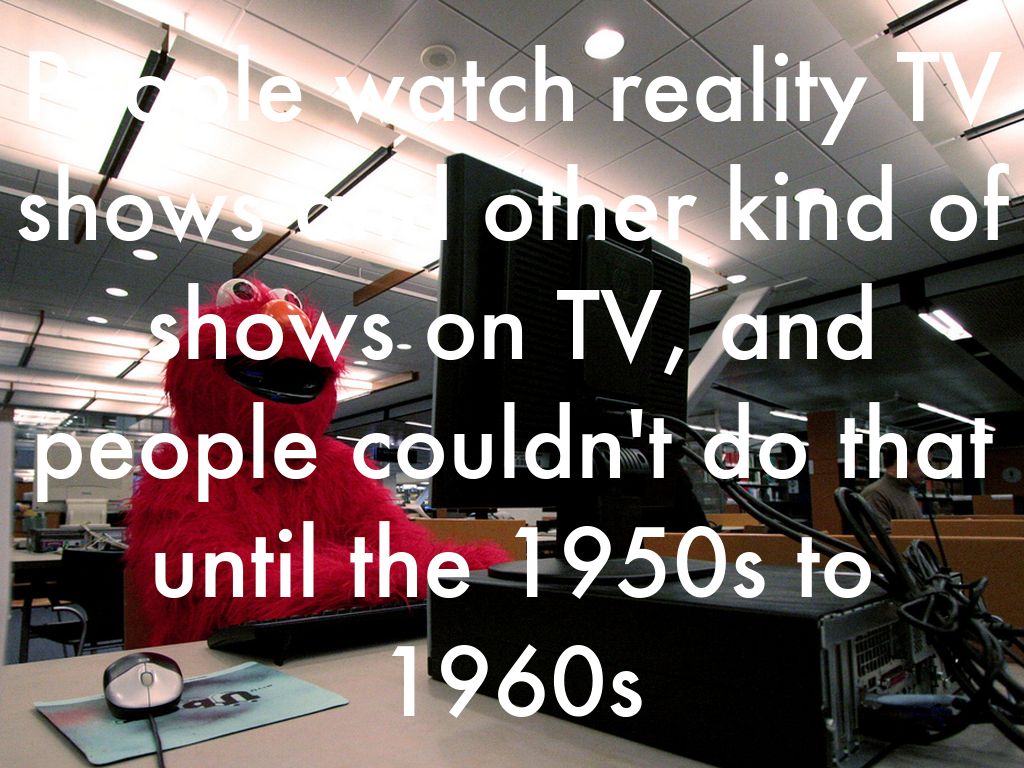 People watch reality TV shows and other kind of shows on TV, and people couldn't do that until the 1950s to 1960s