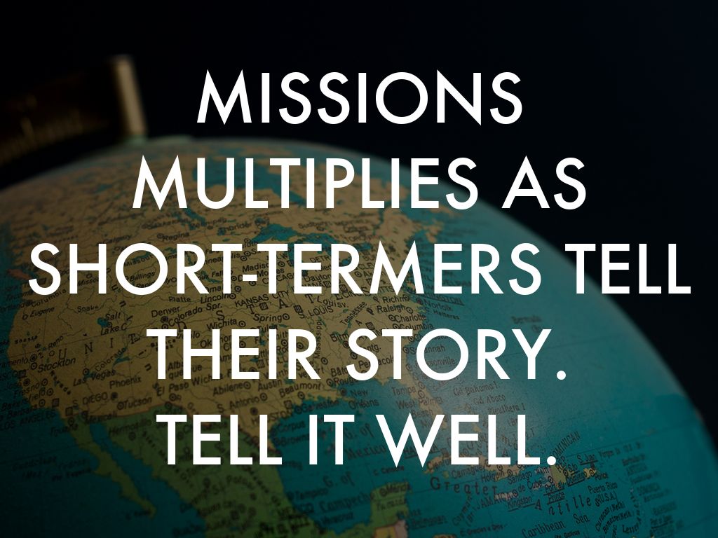 MISSIONS MULTIPLIES AS SHORT-TERMERS TELL THEIR STORY.
