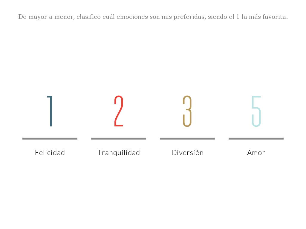 De mayor a menor, clasifico cuál emociones son mis preferidas, siendo el 1 la más favorita.