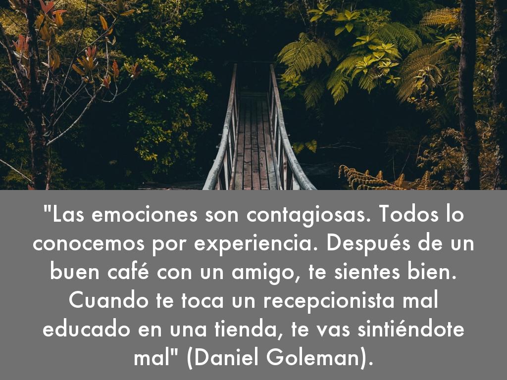 "Las emociones son contagiosas. Todos lo conocemos por experiencia. Después de un buen café con un amigo, te sientes bien. Cuando te toca un recepcionista mal educado en una tienda, te vas sintiéndote mal" (Daniel Goleman).