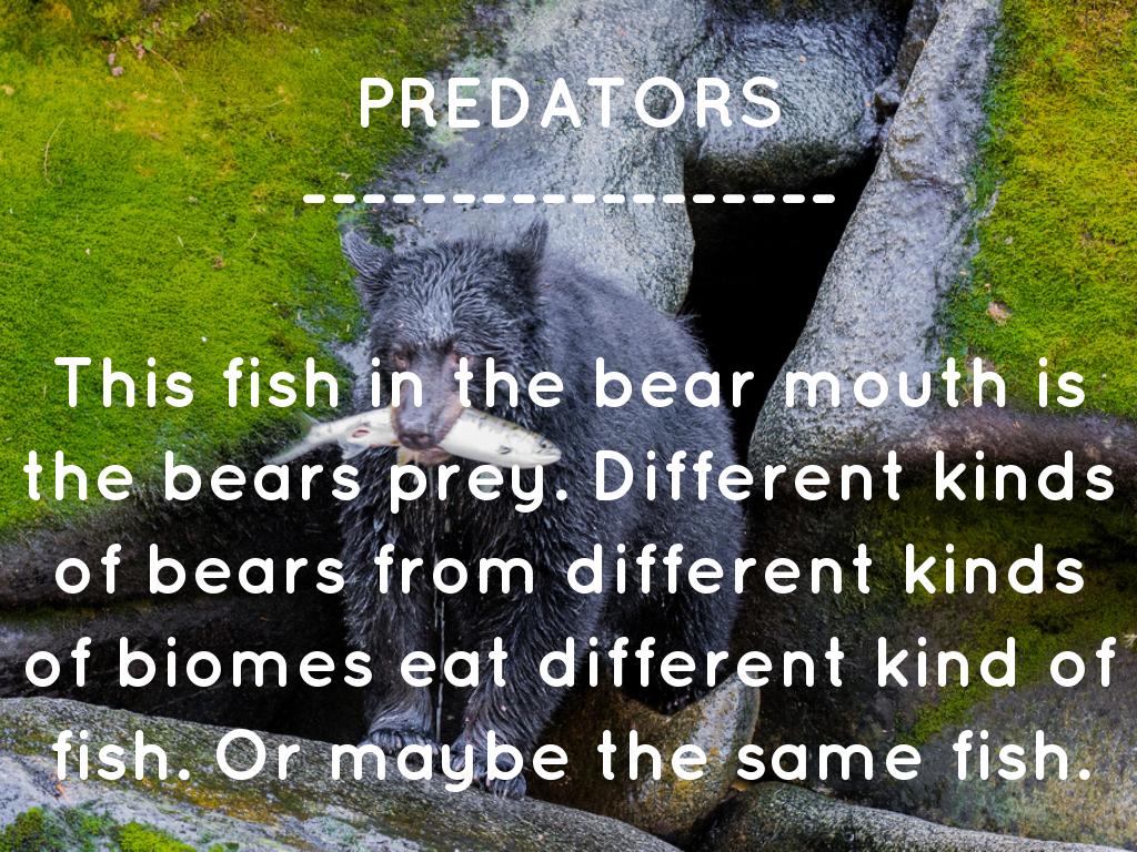 This fish in the bear mouth is the bears prey. Different kinds of bears from different kinds of biomes eat different kind of fish. Or maybe the same fish.