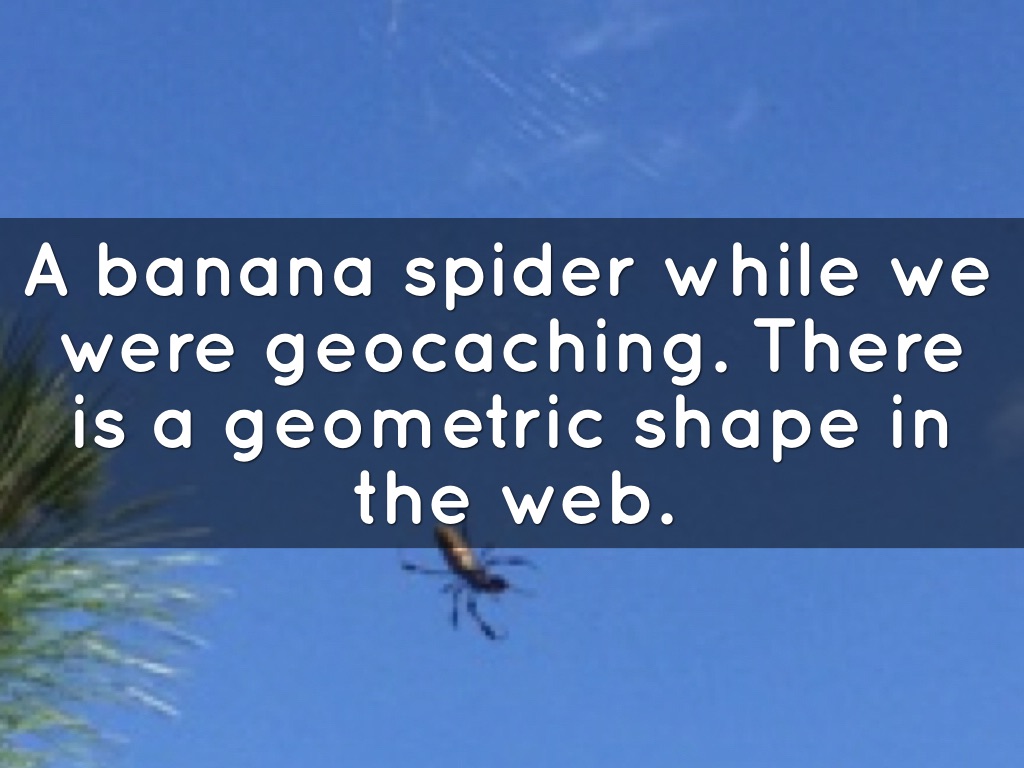 A banana spider while we were geocaching. There is a geometric shape in the web.