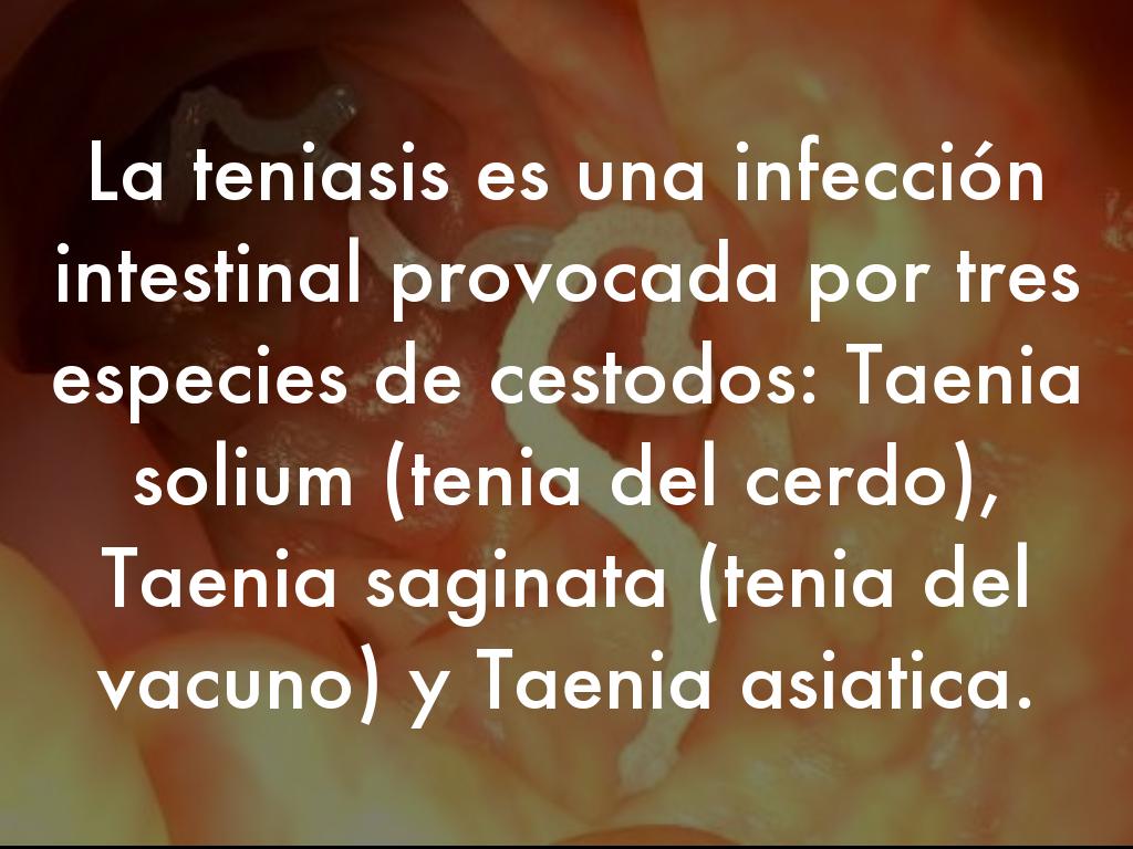 La teniasis es una infección intestinal provocada por tres especies de cestodos: Taenia solium (tenia del cerdo), Taenia saginata (tenia del vacuno) y Taenia asiatica.