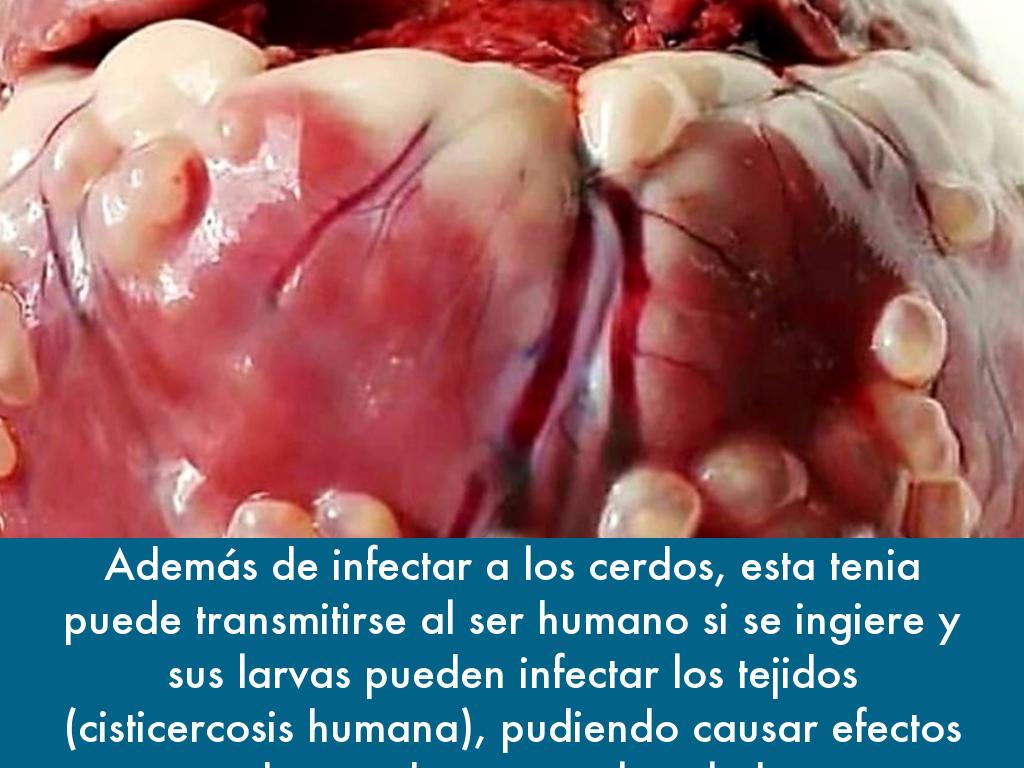 Además de infectar a los cerdos, esta tenia puede transmitirse al ser humano si se ingiere y sus larvas pueden infectar los tejidos (cisticercosis humana), pudiendo causar efectos devastadores para la salud.