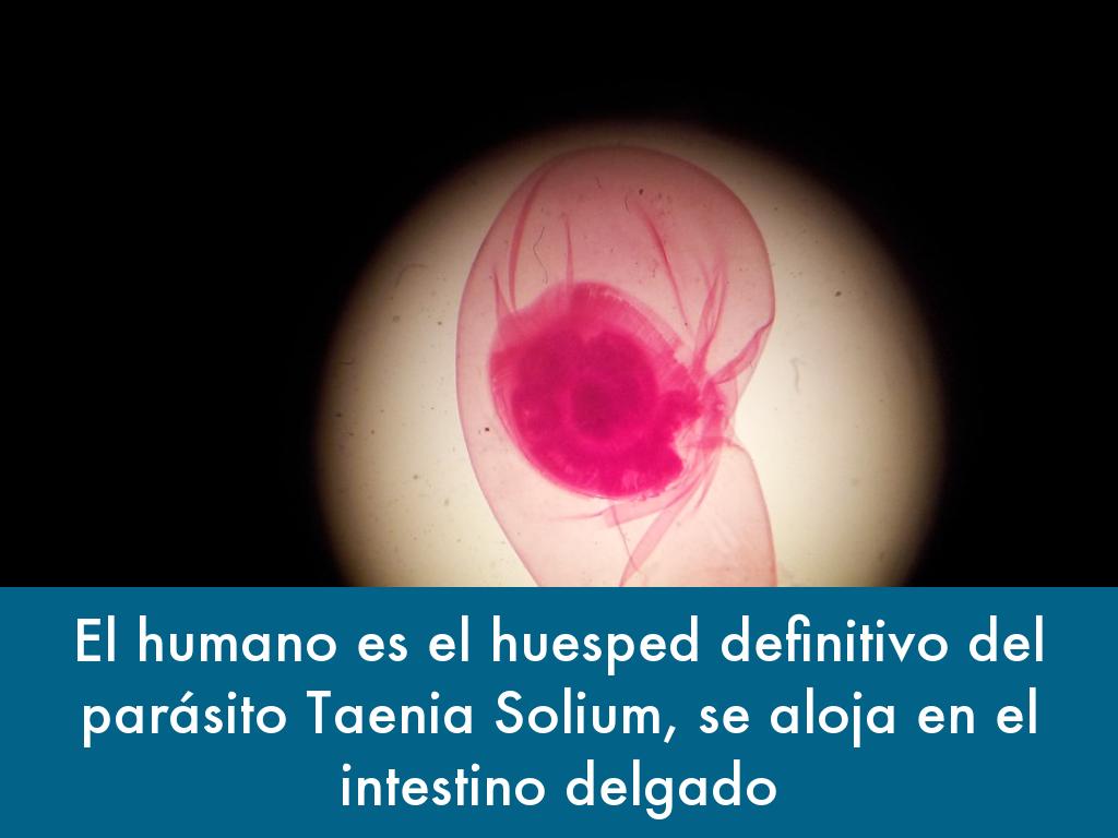El humano es el huesped definitivo del parásito Taenia Solium, se aloja en el intestino delgado