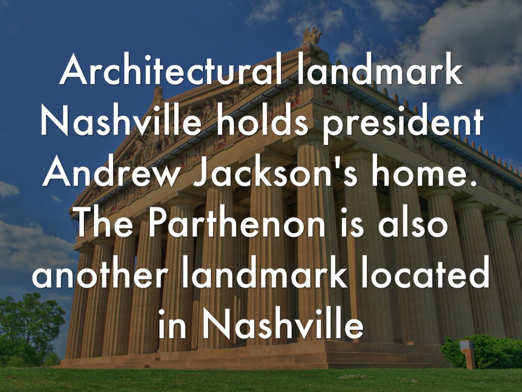 Nashville holds president Andrew Jackson's home. The Parthenon is also another landmark located in Nashville