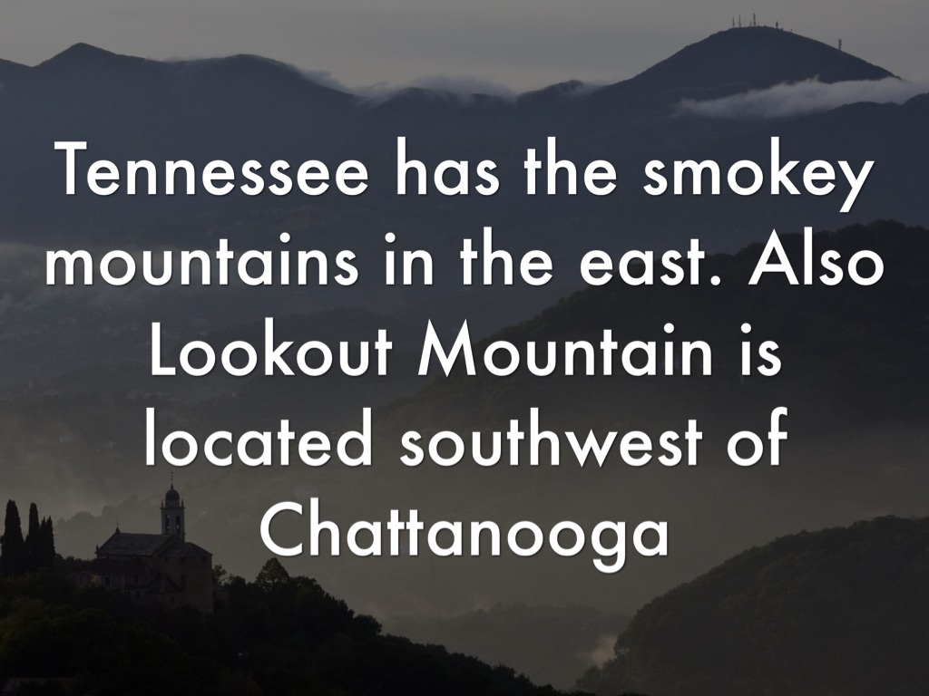 Tennessee has the smokey mountains in the east. Also Lookout Mountain is located southwest of Chattanooga