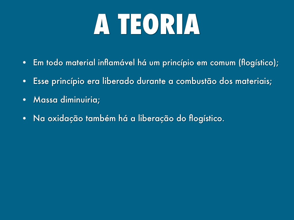 Na oxidação também há a liberação do flogístico.