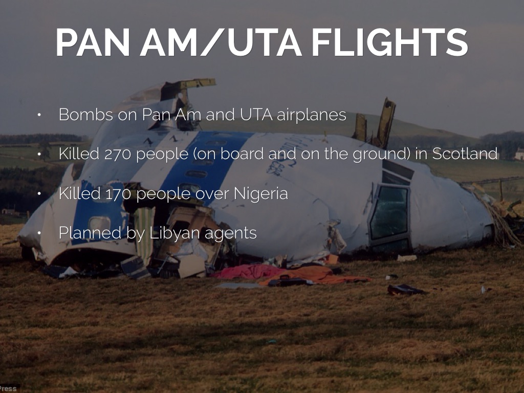 • Bombs on Pan Am and UTA airplanes