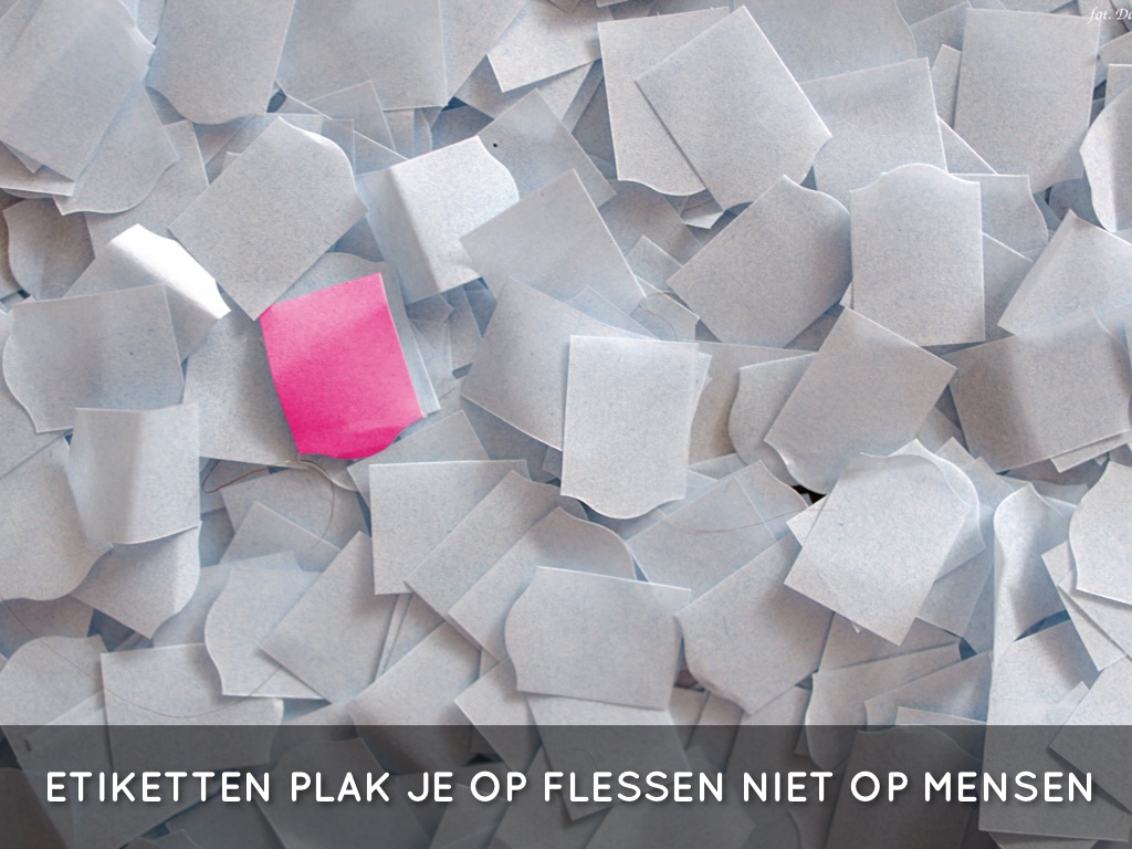ETIKETTEN PLAK JE OP FLESSEN NIET OP MENSEN
