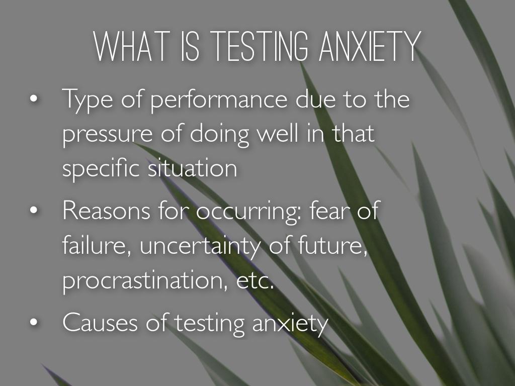 - After experiencing anxiety during one exam, students may become so fearful about it happening again that they actually become even more anxious during the next exam.