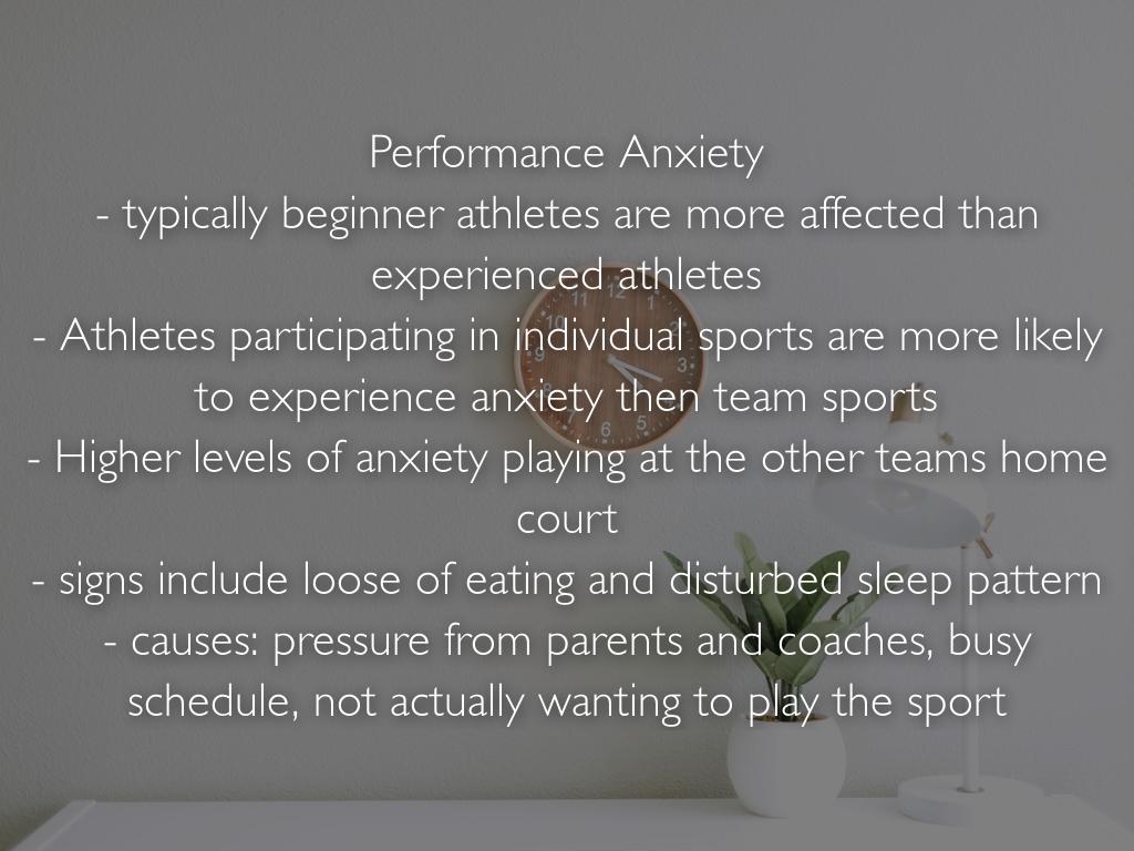 - Athletes participating in individual sports are more likely to experience anxiety then team sports
