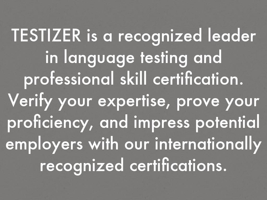 TESTIZER is a recognized leader in language testing and professional skill certification. Verify your expertise, prove your proficiency, and impress potential employers with our internationally recognized certifications.