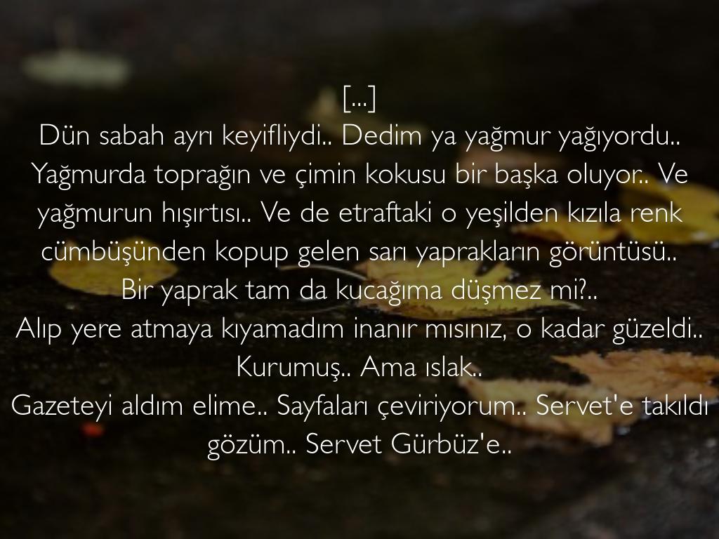Gazeteyi aldım elime.. Sayfaları çeviriyorum.. Servet'e takıldı gözüm.. Servet Gürbüz'e..